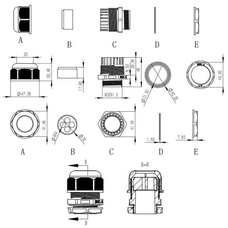 Confirm your cable OD fits the hole size before final assembly. Route cables first, then tighten evenly to compress the seals and maintain the IP68 rating.